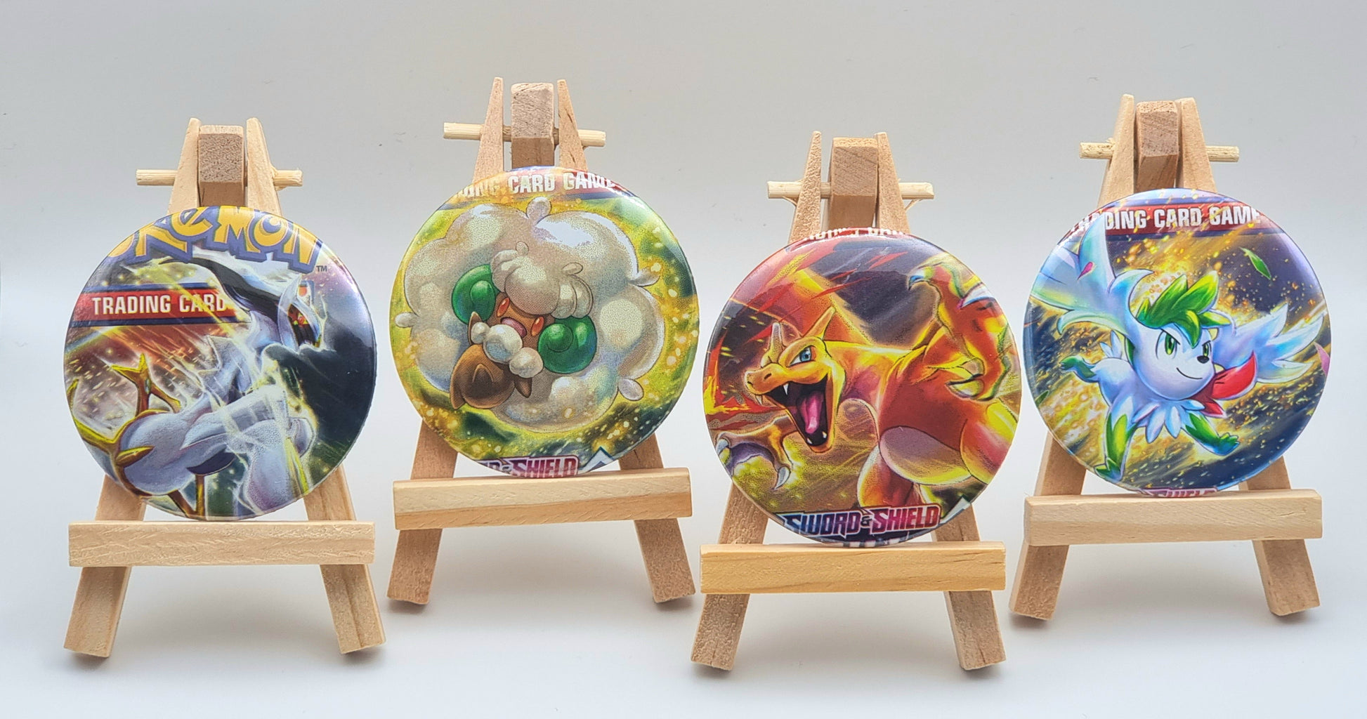 Button Badge made from upcycled Brilliant Stars Pokemon Booster Packs. Each badge is 58mm. All designs are from the current set: Sword and Shield - Brilliant Stars.